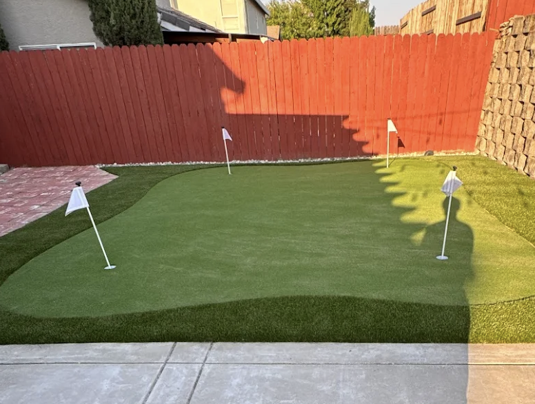 "I’m very happy with the layout that was created for my side yard by Total Turf. They added a concrete patio which allows me to bbq and sit outside and putt away. I love relaxing and having drinks outside. I’m very happy with the service. The workers were outstanding. The workers showed up on time. They cleaned up everyday and the project was completed within three days! Working with Tom at Total Turf was great. They helped me with the layout and I wasn’t disappointed at all. Highly recommend anyone to work with Total Turf."